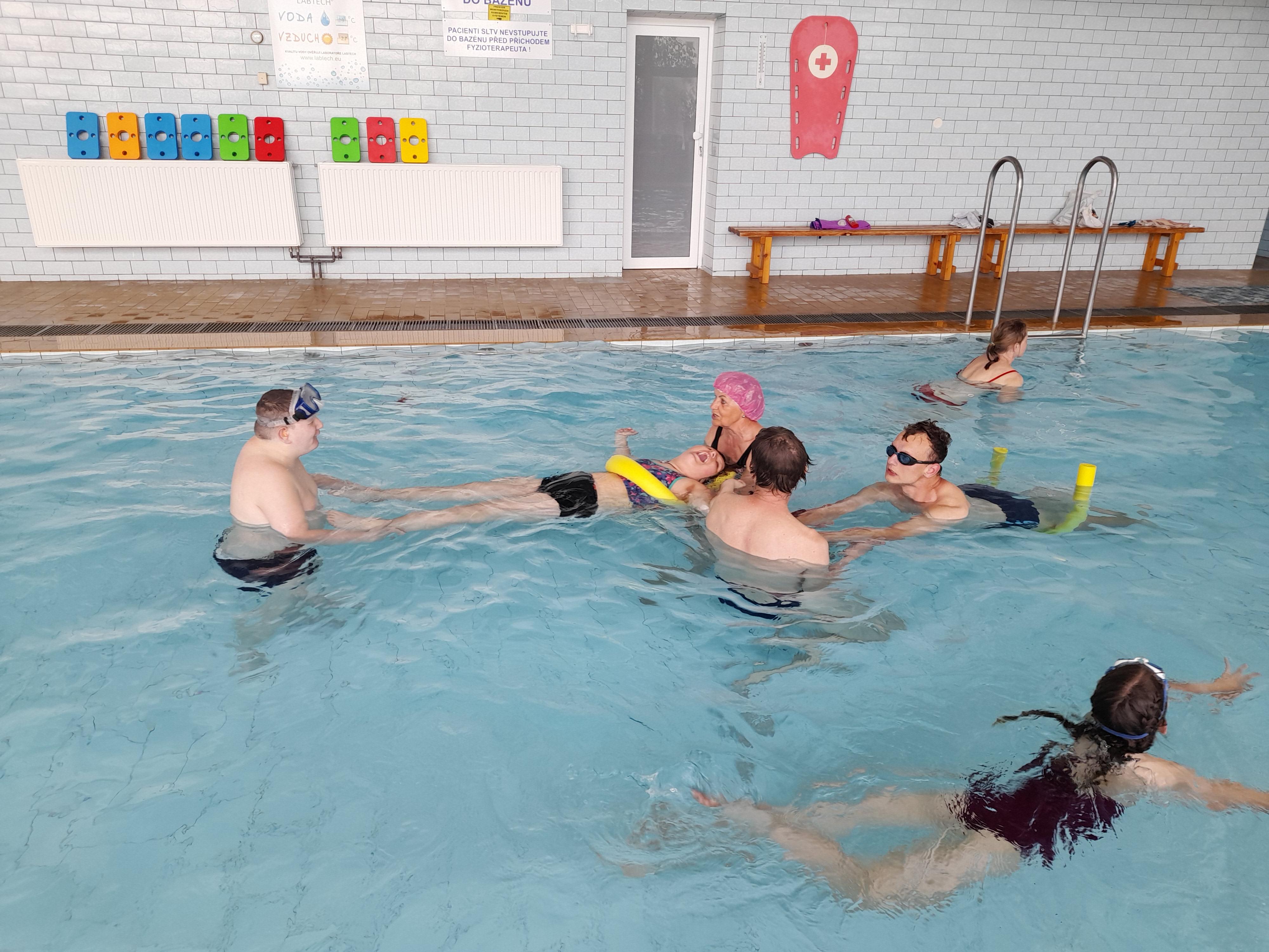 Aquaterapie v rámci volnočasových aktivit nepředstavuje klasický plavecký výcvik. Jejím hlavním cílem u dětí i dospělých se zdravotním postižením je odbourat strach z vody a zprostředkovat jim radost z volného pohybu i společných her. Terapie napomáhá celkovému uvolnění pohybového aparátu, psychickému zklidnění a posílení sebevědomí.