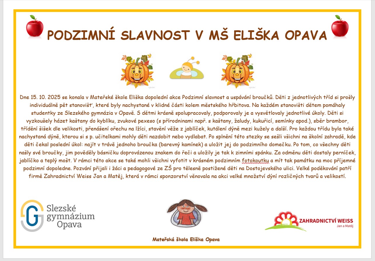 Podzimní slavnost v MŠ Eliška