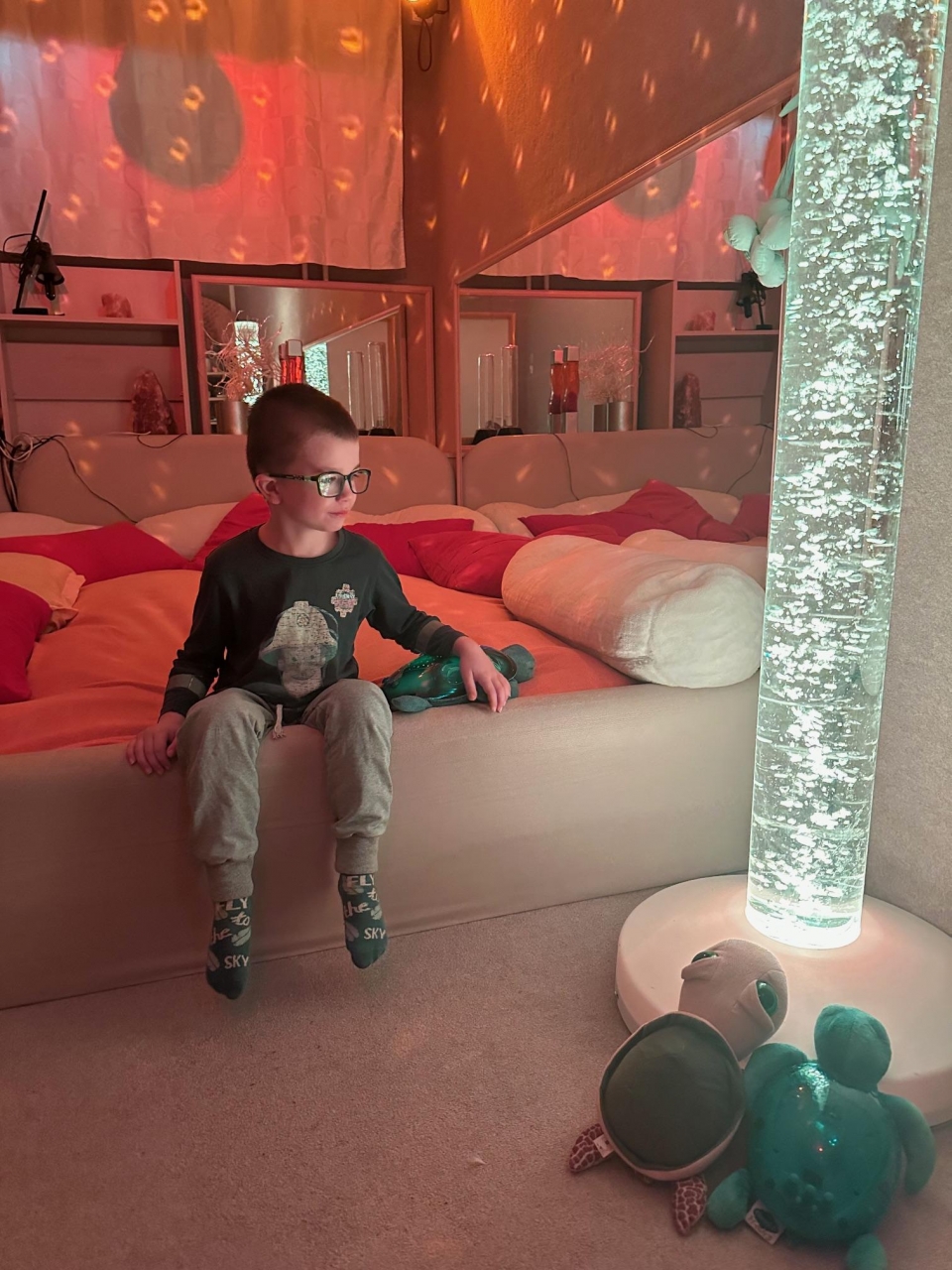 Každý čtvrtek chodíme s dětmi ze třídy Medvídci do relaxační místnosti zvané Snoezelen.