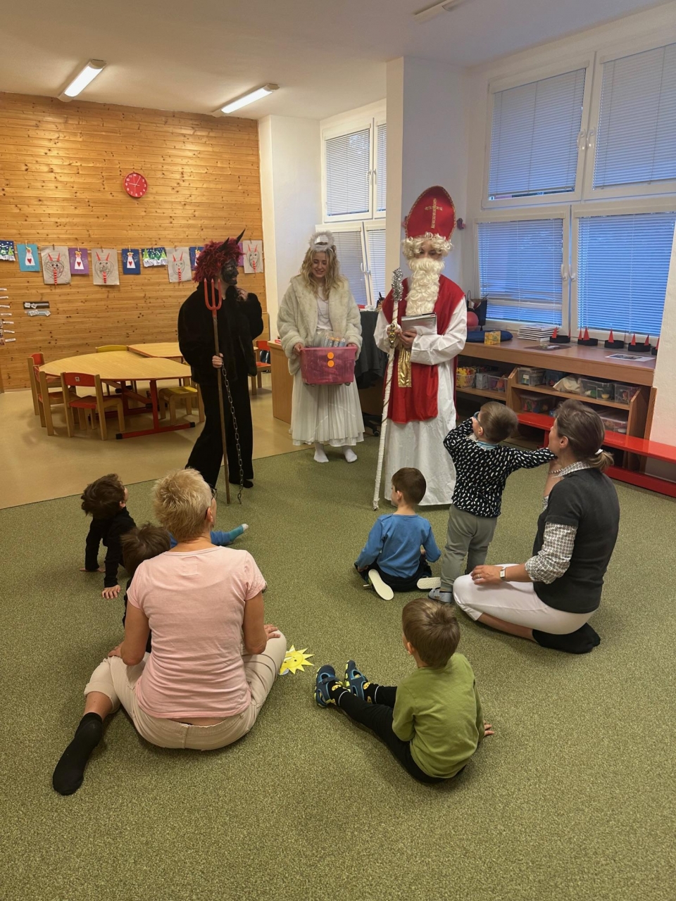 5.12.2025 chodil po všech třídách v naší školce Mikuláš v doprovodu Anděla a Čerta. Děti jim zazpívaly písničku nebo zarecitovaly básničku a za to je neminuly sladké odměny.